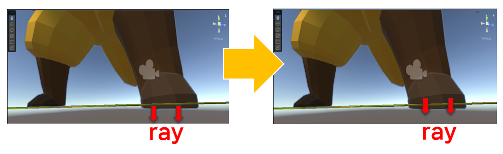 실제로 발이 장애물 표면보다 더 깊이 들어가는 위치가 있었고, 이런 경우 ray로 ground를 인지할 수 없게 된다.