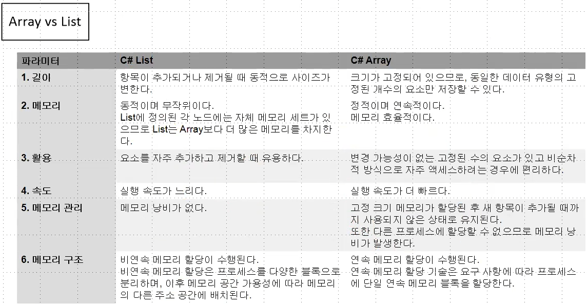 Array와 List의 차이
