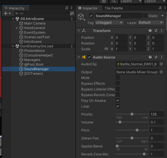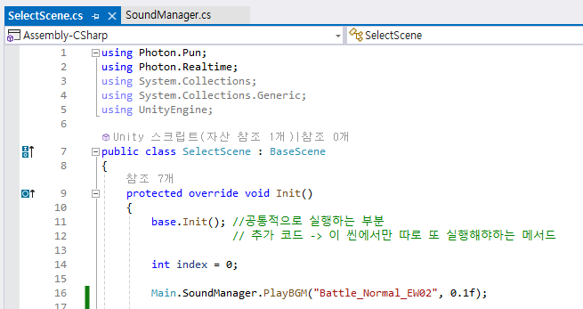 따라서 기존에 작동하고 있는 SoundManager를 유지하되, 각 Scene에서 Init 하는 부분에 배경음악 리소스를 변경하는 방법을 채택했다.